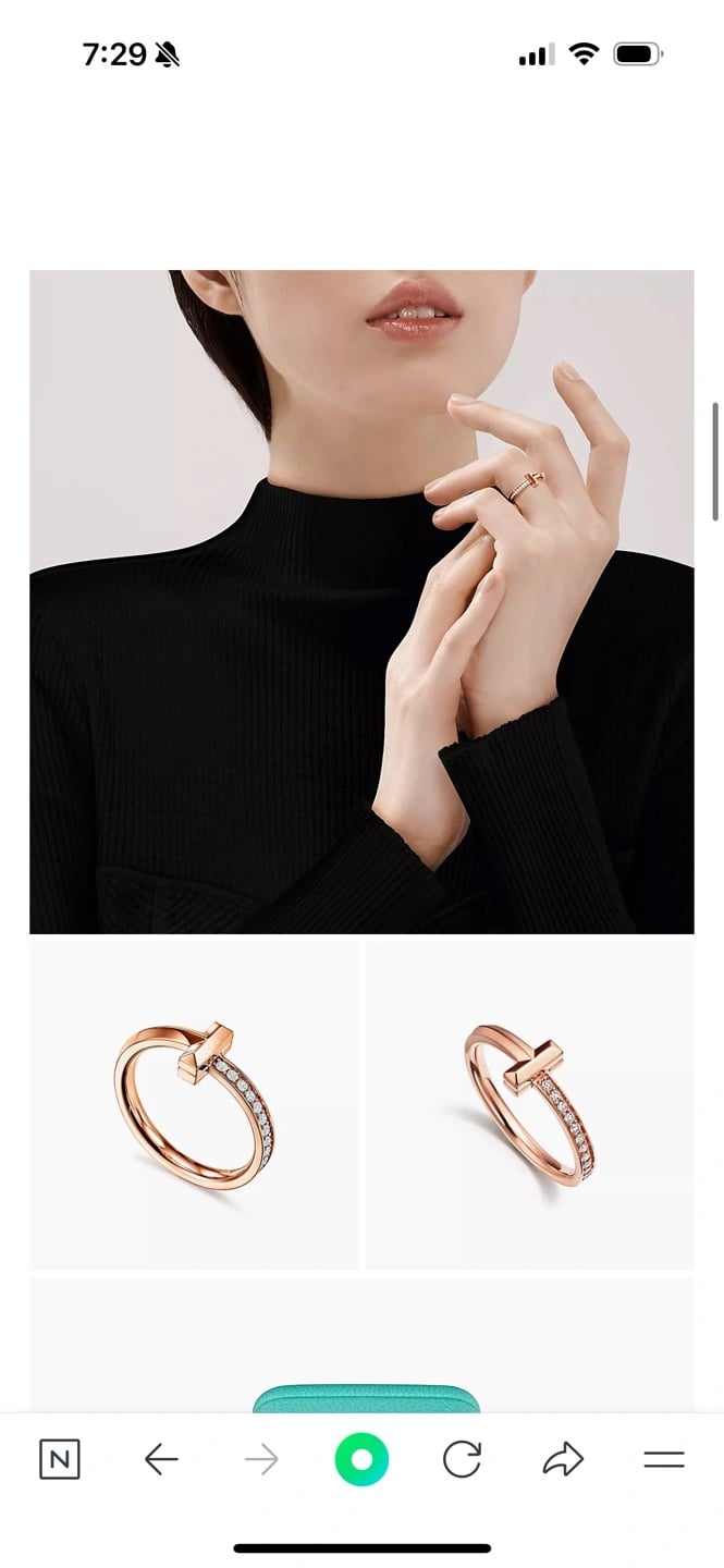 티파니 T 1 링로즈/핑크골드, 세미 파베, 7.5호, 한국사이즈로16호(17.7둘레)