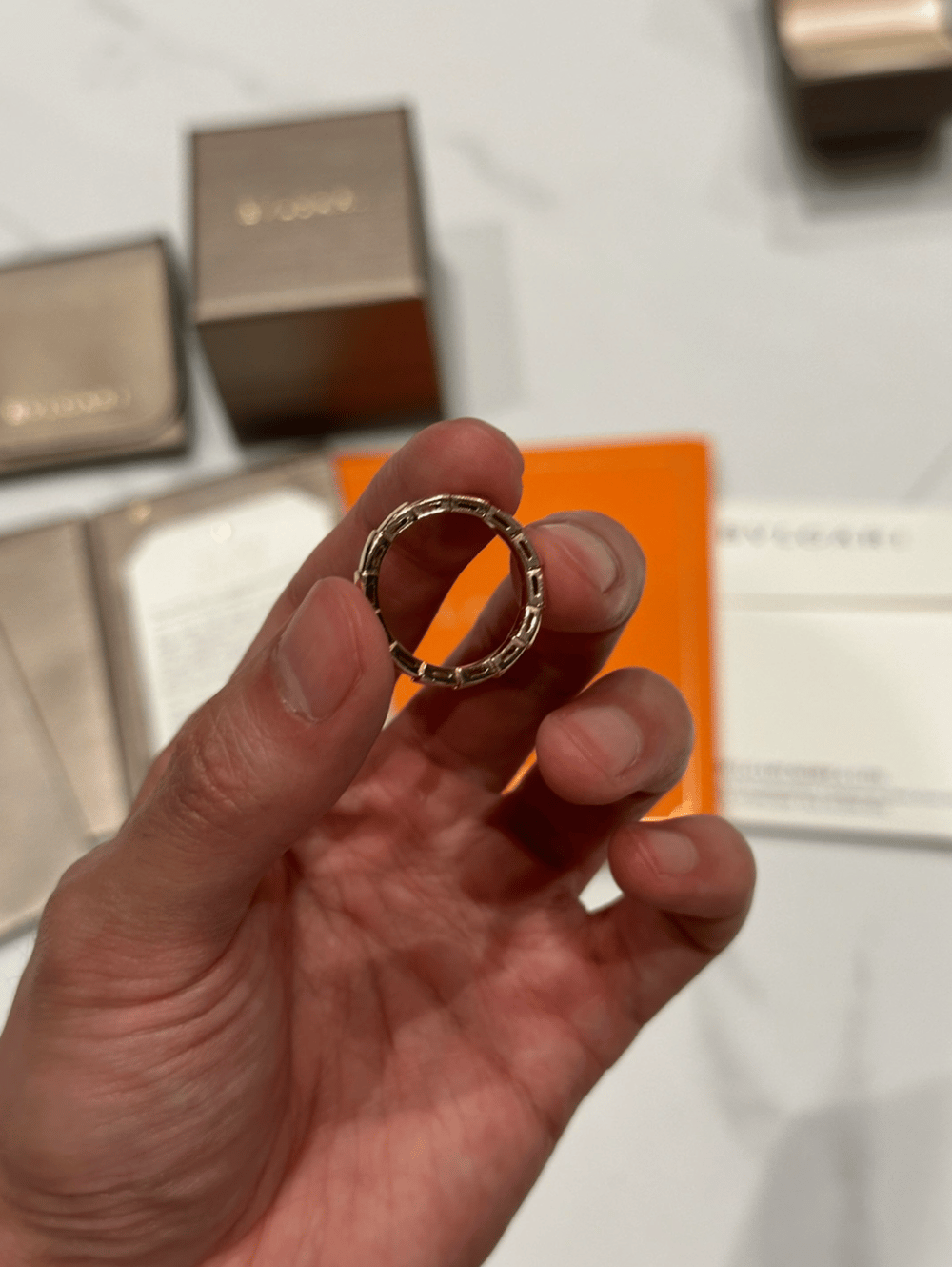 위시 담아두고 판매자님이 가격인하했다는 푸시 받고 바로 질렀어요. 사용감 없고 보증서랑 케이스 쇼핑백까지 풀구성이었어요. 존재감 뿜뿜해서 당분간 문신템 예약이요~ 주얼리는 사랑입니다🫶 너무 예뻐요