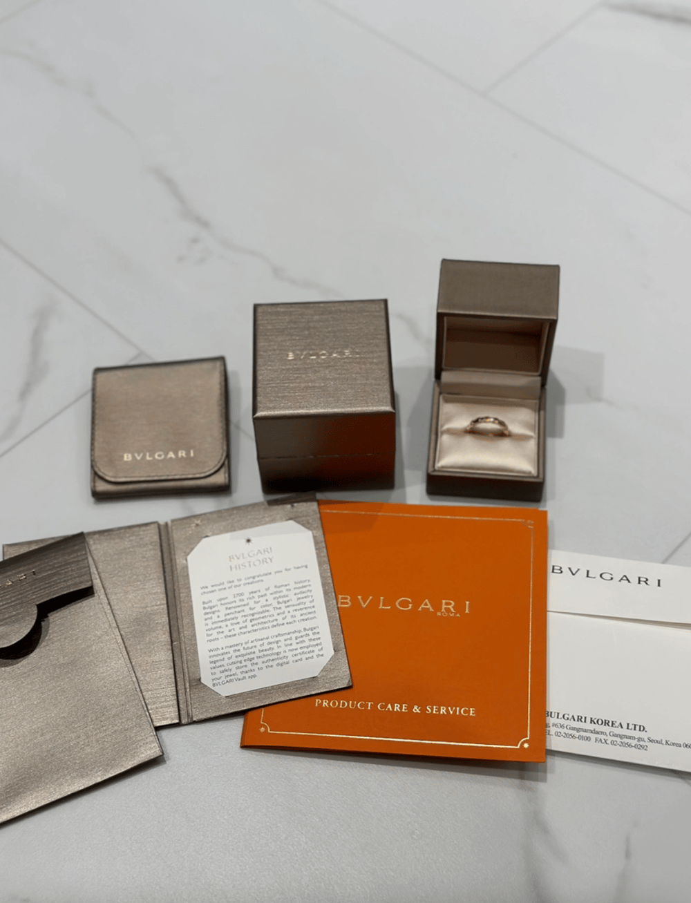 반지, 인보이스, 보증서, 케이스, 여행용 케이스 (쇼핑백은 원래 다 버리는 편이라 쇼핑백만 없습니다)