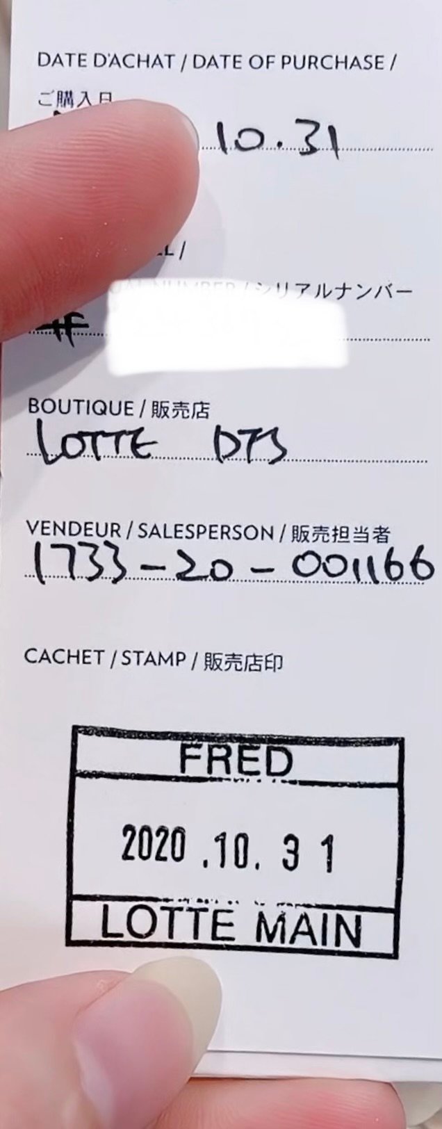프레드 보증서는 제품 카테고리(팔찌, 목걸이, 귀걸이)에 따라 보관 위치와 형태가 조금씩 달라요. 처음 케이스를 열었을 때 “어? 보증서가 없는데?” 싶으셨다면, 아마도 제품마다 다른 구성 때문일지도 몰라요 😊 ⚓ 팔찌 (미디엄·라지 모델) 미디엄 사이즈 이상 모델부터 긴 종이 형태로 들어 있어요. 표지에는 ‘착용법’ 이라고 적혀 있어서 처음엔 사용설명서로 착각하기 쉽지만, 펼쳐보면 안쪽에 보증서 정보가 함께 기재돼 있답니다. [보증서에서 확인할 수 있는 정보] - 제품 번호: 버클과 케이블 각각의 제품 번호가 적혀 있어요. 케이블 제품 번호 뒤에는 #12처럼 착용 사이즈가 함께 표시돼요. (예: 1B1234, 2B1234 #12) - 구매 일자 : 보증 기간의 기준이 되는 날짜로, [년. 월. 일] 형태로 표기돼요. (예: 2025. 09. 24) - 시리얼 넘버 : 같은 모델 중에서도 ‘내 주얼리 한 점’을 구별해주는 고유 번호예요. - 매장 이름 : 구매하신 공식 매장의 이름이 기재돼요. *현재는 긴 종이 형태가 일반적이지만, 예전 구매 제품은 '정사각형' 형태로 작은 파우치 안에 들어 있기도 해요. 💎 목걸이 · 귀걸이 · 팔찌(스몰 모델) 이 제품들은 박스 구조가 조금 달라요. 보증서는 제품이 담긴 박스 맨 아래쪽, 서랍형 공간에 보관되어 있답니다. 작은 끈을 살짝 당기면, 안쪽에 정사각형 모양의 보증서를 확인하실 수 있어요. 💡페이브릴 Tip. 프레드 보증서는 케이스 안에 함께 보관되는 형태라 분실 우려가 적은 편이에요. 내 주얼리에 대한 정보를 담고 있는 유일한 공식 문서로, 추후 재판매나 감정 시 제품의 가치를 높여주는 중요한 증빙 자료로 활용될 수 있어요.