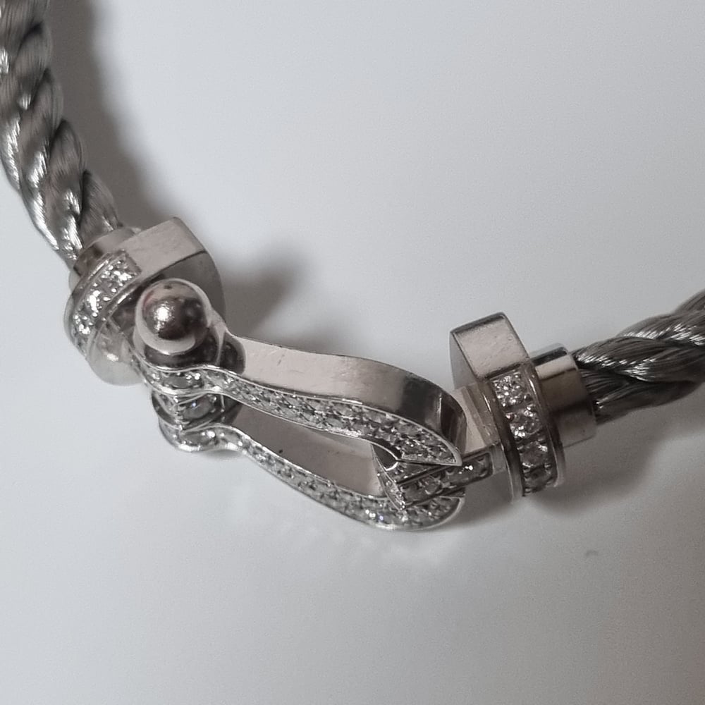 프레드 포스텐 (스틸) 브레이슬릿미디엄, 화이트골드, 세미 파베, 15호